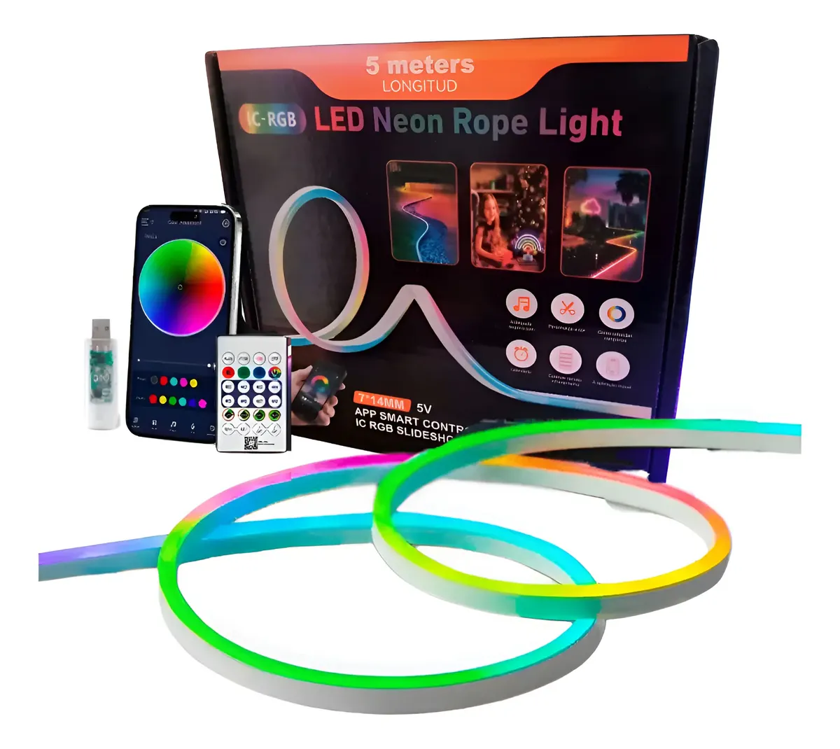 Envíos a nivel nacional.Transforma cualquier ambiente con la tecnología de iluminación más avanzada. La LED Neon Rope Light no solo decora, sino que se integra totalmente a tu estilo de vida gracias a su control inteligente y efectos de color dinámicos.